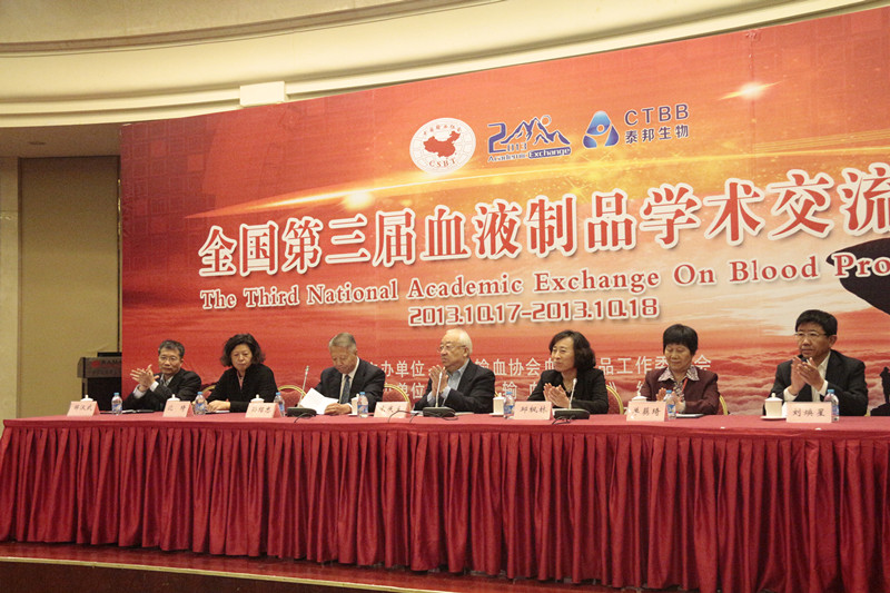 2013年10月17-18日,由中國輸血協會血液制品工作委員會主辦、《中國輸血雜志》編輯部協辦、山東泰邦生物制品有限公司承辦的全國第三屆血液制品學術交流會在山東泰安成功舉行,大會開幕式由中國輸血協會副理事長孫紹忠主持,中國輸血協會理事長朱慶生、山東省衛生廳副廳長邱楓林、泰安市衛生局局長劉煥星、中國輸血協會副理事長單藕琦、中檢院生物制品研究所所長沈琦、中國輸血協會血液制品工作委員會主任委員鄒漢武等領導出席了會議,來自美國的專家、學者以及來自各血液制品公司、單采血漿站、各血液制品研究單位等77家單位近200余位會議代表參加了本屆學術交流會。